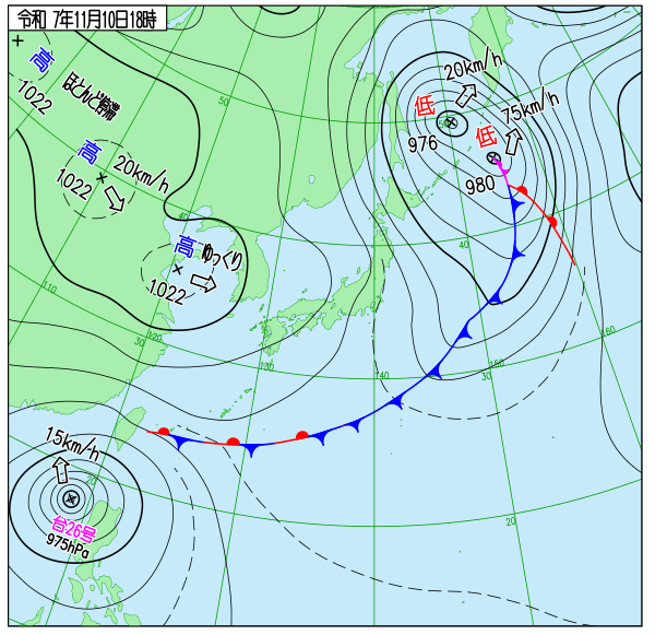 【大雨・台風情報】大型の台風26号いまどこ? 今後「強い勢力」に発達して沖縄接近か 13日には温帯低気圧に変わる見通しも…14日頃にかけては『警報級の大雨』の恐れあり【雨風シミュレーション】 青森テレビ 2025年11月10日(月) 23:25 国内 【天気図(最新・24時間・48時間予想図あり)】 気象庁HPより(11月10日午後10時10分現在) 気象庁HPより 気象庁HPより 気象庁HPより