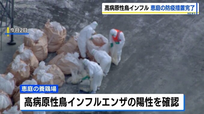 高病原性鳥インフルエンザの感染が確認された北海道恵庭市の養鶏場について、北海道は防疫措置が完了したと発表しました。