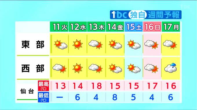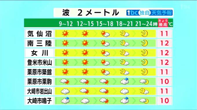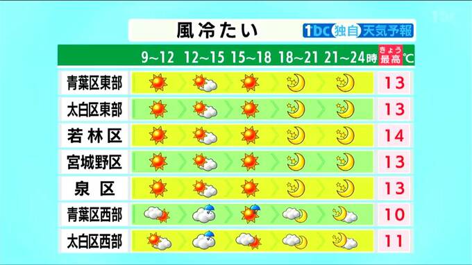 寒気の影響もあり11日の予想最高気温は13℃とあまり気温が上がりません。夕方まで強風に注意が必要です。この風がかなり冷たく感じられる一日になるでしょう。