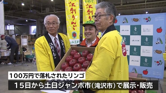 落札されたリンゴは15日から岩手県滝沢市の土日ジャンボ市で展示・販売されるということです。
