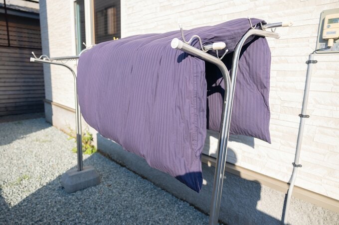 また、外気温は大きく左右されませんが、暑い日に羽毛布団を長時間干すと布団が熱を持ってしまい、就寝時間までに適温へ下がらないというデメリットがあります。