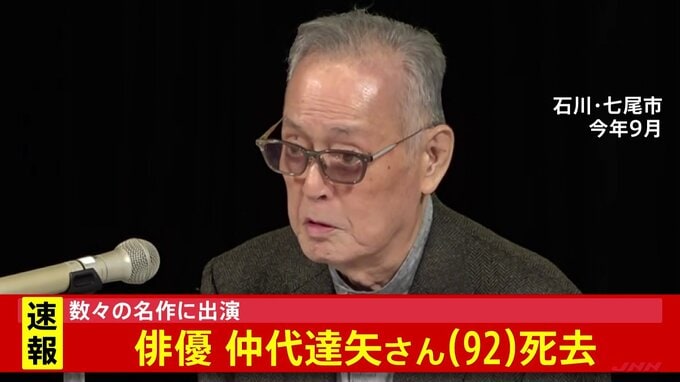 文化勲章受章者で、俳優の仲代達矢さんが亡くなりました。92歳でした。仲代さんは1932年、東京生まれ。黒澤明監督の「用心棒」や「影武者」など数多くの映画に出演したほか、俳優を育成する「無名塾」を設立し、次…