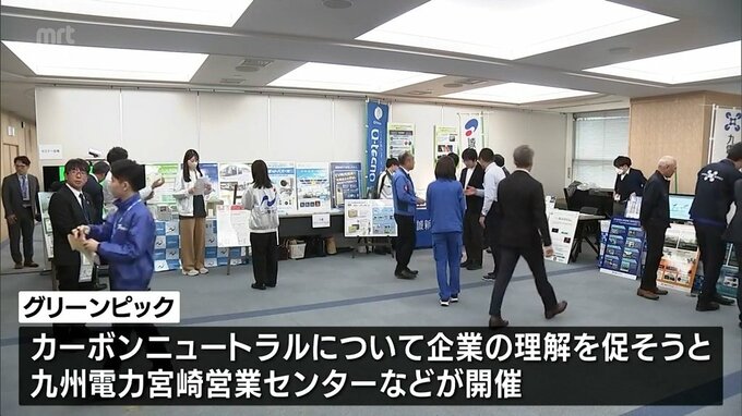 脱炭素社会の実現に向けた取り組みを企業などに紹介するイベント「グリーンピック」が宮崎市で開かれています。このイベントは温室効果ガスの排出を実質的にゼロにするカーボンニュートラルについて企業の理解を促…