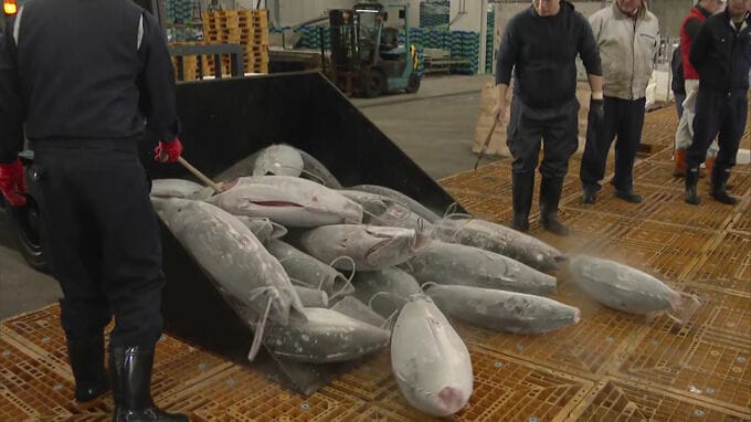 11日朝、福岡市中央卸売市場では、福岡、山口、長崎の3県が共同運行する実習船「海友丸」がカジキマグロなどおよそ8トンを水揚げしました。