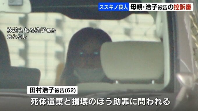 田村浩子被告(62)は、娘の瑠奈被告(31)が遺体の一部を自宅に遺棄し、損壊することを手助けした罪に問われています。