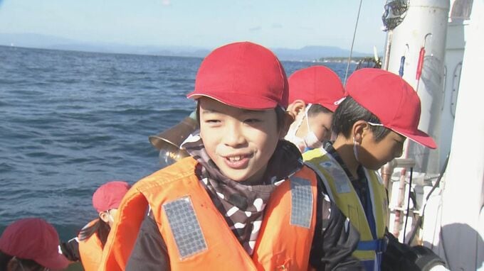 これは海の魅力を子どもたちに知ってもらおうと、志摩市の和具海老網漁業同盟会が毎年行っているもので、けさは志摩小学校の5年生が地元で盛んな伊勢エビの「刺し網」漁に挑戦。