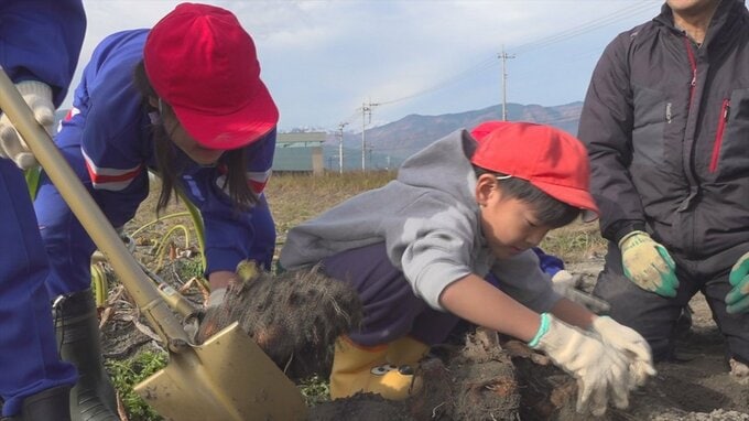 今回収穫した「やはたいも」は家に持ち帰るほか、今週金曜日の給食で「グラタン」にして全校児童で味わうということです。
