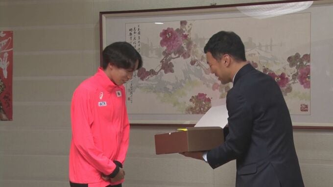「なかなか帰省するタイミングがないのでこうして帰ってこられる機会があってよかったなと思っています。いつも本当に大勢の方々に来ていただいてねぎらっていただいてすごく嬉しいですし、こんなにもたくさんの方々に応援していただいているんだというのも肌で感じることができて、ありがたいなと思っています。いまはニューイヤー駅伝に向けて練習しています。今後は2年後の世界陸上、オリンピックが大きな目標となっています。」