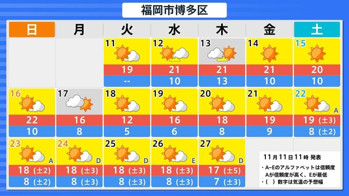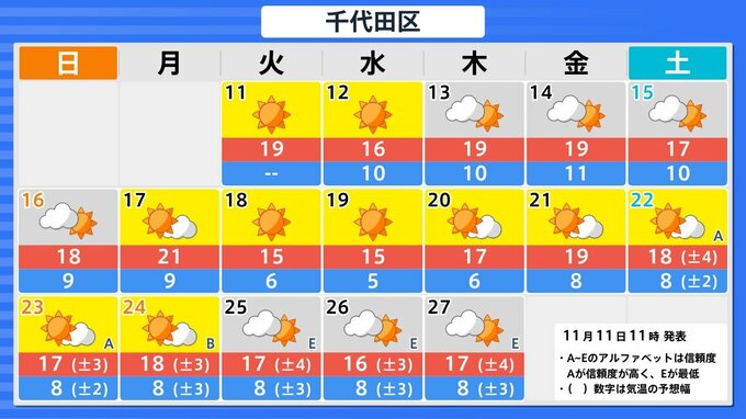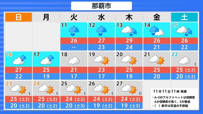 【台風情報】「台風26号(フォンウォン)」 暖かく湿った空気が前線を刺激 「沖縄地方」では大気の状態が非常に不安定になる見込み 予想進路&雨風シミュレーション&16日間天気予報【気象庁 11日午後2時更新】 RSK山陽放送 2025年11月11日(火) 14:00 国内 天気 今後16日間の全国各地の天気予報 札幌・仙台・東京・名古屋・大阪・広島・福岡・那覇の16日間天気予報は以下の画像の通りです。 今後の気象情報に注意してください。