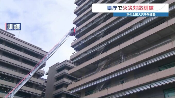 11月9日~15日の「秋の全国火災予防運動」に合わせて、11日、熊本県庁で火災への対応訓練が行われました。