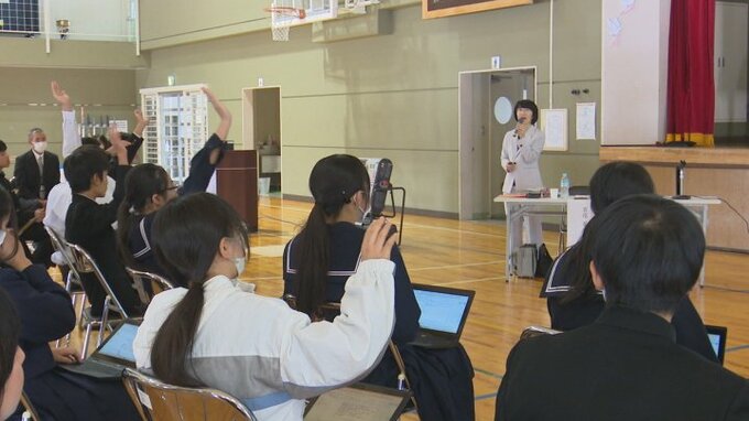 この講演会は11日、県の「がん教育」推進校の指定を受けた甲州市の松里中学校で行われ、全校生徒と地域住民らおよそ50人が参加しました。