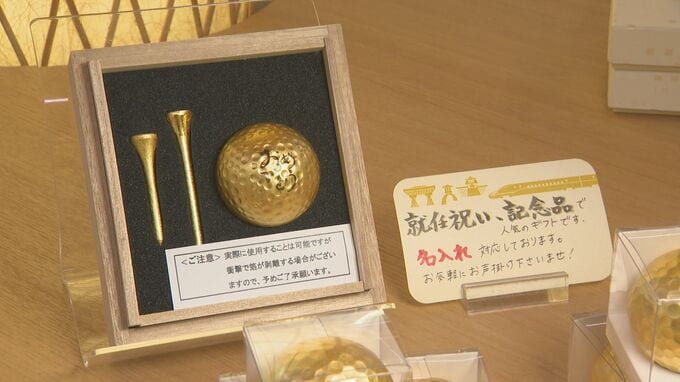 箔一の売り上げの中でも上位に入る金箔ゴルフボール。男性への贈り物やゴルフコンペの景品としても購入されることの多い商品ということです。金沢の金箔を使ったゴルフボールが贈呈されたこともあり、箔一でも企業のノベルティとしての使用が決まるなど、売り上げアップにも繋がっているそうです。