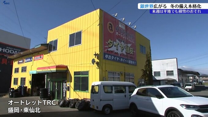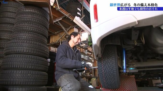こちらのタイヤ専門店では、冬用タイヤへの交換依頼が例年に比べ1~2週間早く増え始め、一日の平均台数は3~40台にのぼるといいます。