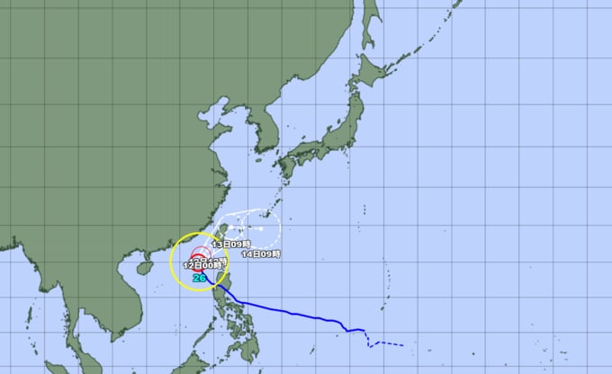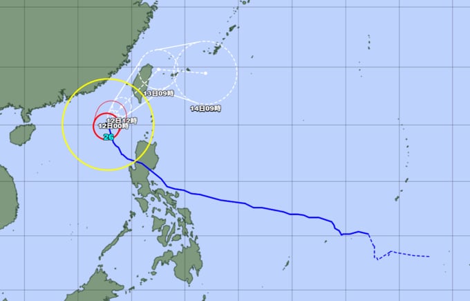 25m/s以上の暴風域 南西側 150 km (80 NM)