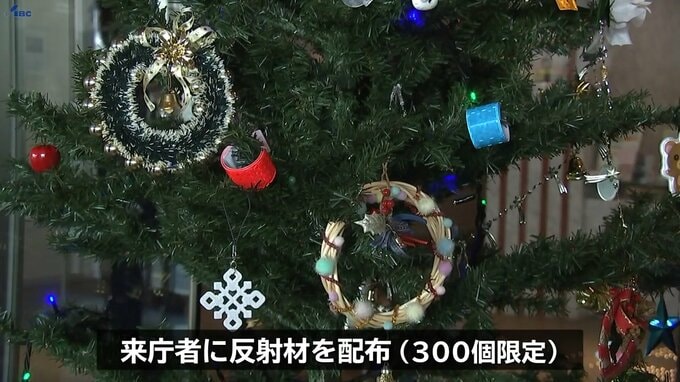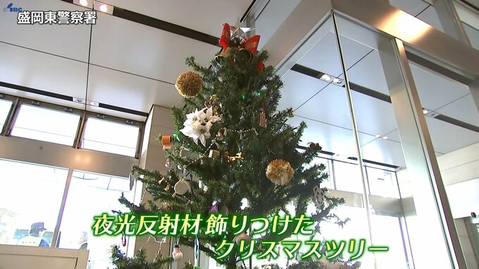 このクリスマスツリーは12月25日まで盛岡東警察署に飾られるほか、来庁者には300個限定で反射材が配布されます。