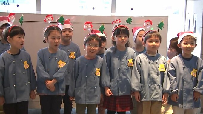 点灯式には、警察署の近くにある桜幼稚園の年長児14人が参加しました。園児たちは元気よくクリスマスソングを披露し、キーホルダー型やシールタイプの反射材がプレゼントされました。