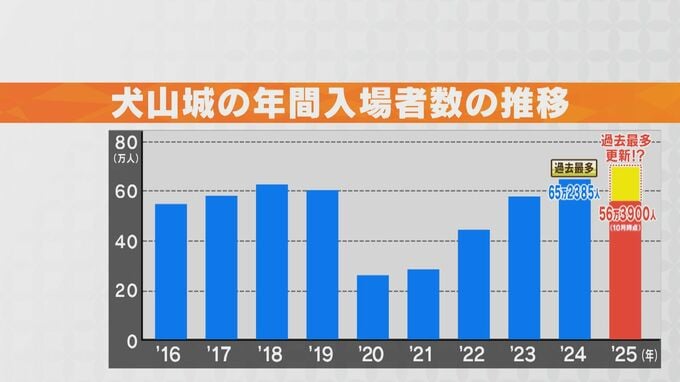 犬山市によると、数年前からSNSなどを使ったプロモーション活動を強化したことが功を奏したと言います。今年は10月までに約56万人が訪れていて、2年連続で過去最多を更新する見込みです。そんな中で、犬山城の入場料を2026年3月からは2倍近く値上げすることが決定。