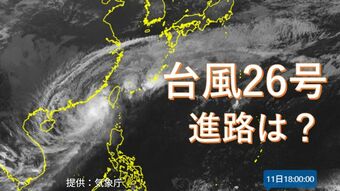 気象庁によりますと、大型の台風26号は、きょう(11日)正午現在、南シナ海をゆっくりの速さで北へ進んでいます。中心の気圧は985ヘクトパスカル、中心付近の最大風速は30メートル、最大瞬間風速は40メ…
