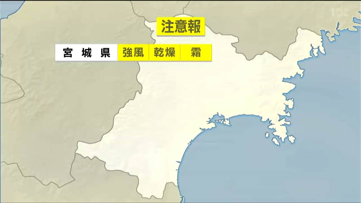 県内全域に強風、乾燥、霜の各注意報が出ています。
