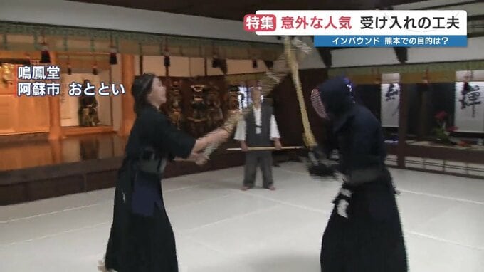 阿蘇市の鳴鳳堂では2年前に剣道や弓道、居合道などの体験を始めました。その利用者の9割が外国人客です。