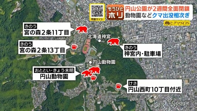 円山動物園や北海道神宮の周辺ではここ数日、クマの出没や目撃が相次いでいます。