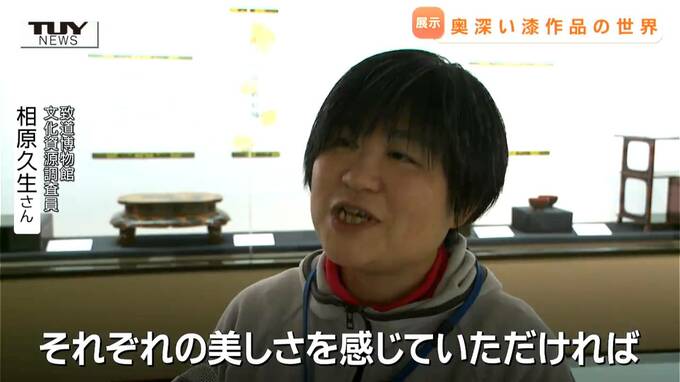 致道博物館 文化資源調査員 相原久生さん「いま漆って、なかなか私たち日本人の生活の中から無くなってしまっているが、日用品としての漆の美しさ、庄内に生まれた作家さんが作った美術品としての美しさ、それぞれの美しさを感じていただければ」