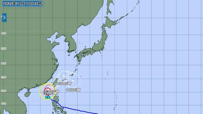 大型の台風26号は南シナ海をゆっくりと北上しています。今後進路を北東へ変え、13日(木)から14日(金)にかけて宮古島や沖縄に接近する見込みです。温帯低気圧に変わる見込みですが、高波や強風、大雨に警戒が必要です。最新の進路に注意してください。