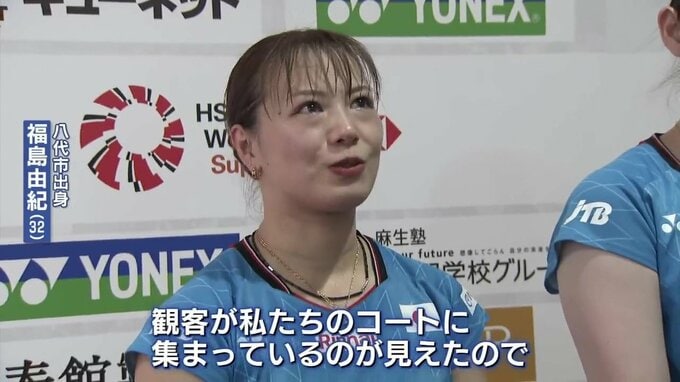 熊本県八代市出身 福島由紀選手「観客が私たちのコートに集まっているのが見えたので、頑張ろうという気持ちになれたそのおかげもあって今日は良い試合ができた」