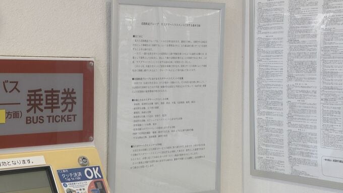 こよみグループでもカスタマーハラスメントに対する基本方針をレジの近くに貼ってあるほか、北陸鉄道でも10月からホームページやチケットセンターなどに対応策を掲示して周知しています。