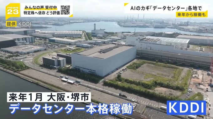 AIに力を入れるKDDIも、2026年1月から大阪・堺市でデータセンターを本格稼働させます。土地面積は約3万3000平方メートル。 大規模な電力設備が備わっているほか、1日数千リットル規模の水が使われる冷却設備も備わっています。