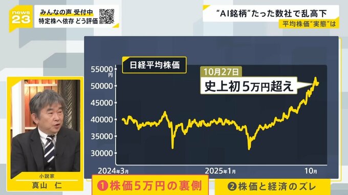 5万円超えの日経平均株価は、数社のAI銘柄によって左右されているということですが、どうですか。