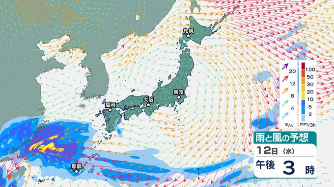 【台風情報】「台風26号(フォンウォン)」 あす(13日)は沖縄地方に接近する見込み 大雨に警戒 今後の予想進路&雨風シミュレーション&16日間天気予報【気象庁 12日午前9時更新】 RSK山陽放送 2025年11月12日(水) 09:00 国内 天気 12日(水)3時間ごとの雨と風のシミュレーションをみる