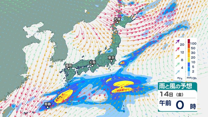 【台風情報】「台風26号(フォンウォン)」 あす(13日)は沖縄地方に接近する見込み 大雨に警戒 今後の予想進路&雨風シミュレーション&16日間天気予報【気象庁 12日午前9時更新】 RSK山陽放送 2025年11月12日(水) 09:00 国内 天気 14日(金)3時間ごとの雨と風のシミュレーションをみる