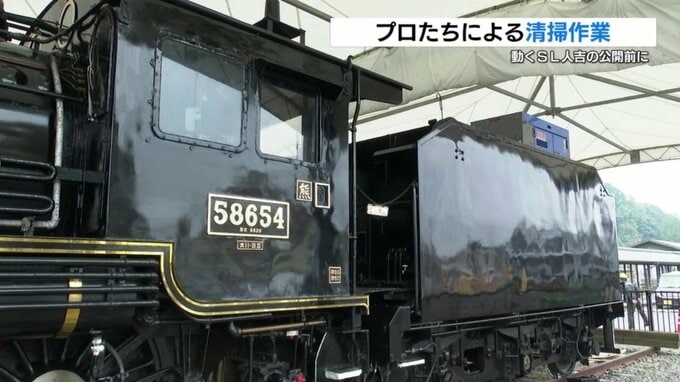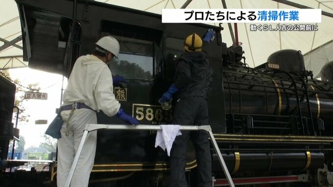 11月16日に、引退したSL人吉が、動く姿で公開されるのを前に、12日、掃除のプロが車体をきれいに磨き上げました。