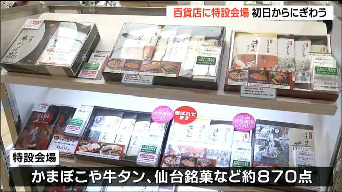 お歳暮商戦が本格化するのにあわせ、仙台市内の百貨店には、12日にお歳暮の特設会場が開設され、初日から大勢の人が訪れにぎわっています。