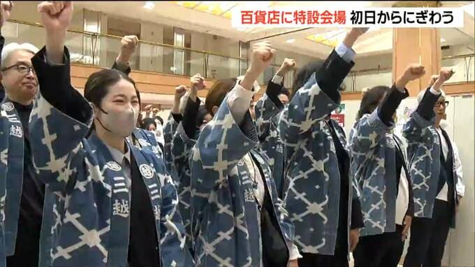 本館7階には特設会場が設けられ、かまぼこや牛タン、仙台銘菓など約870点が並びました。午前10時の開店ともに大勢の人が訪れにぎわいました。