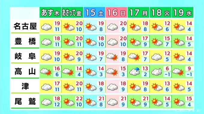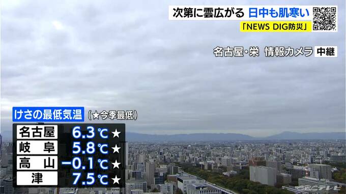 けさの最低気温は名古屋で6.3℃、高山で氷点下0.1℃と、各地で今シーズン一番の冷え込みになりました。