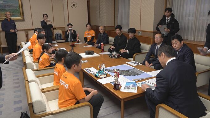 ロボットのプログラミング技術を競うWRO=ワールドロボット・オリンピアードの国際大会に出場する3チームの選手が11日、石川県庁を訪れ、馳浩知事に意気込みを語りました。