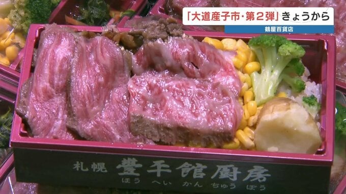 北海道の肉やスイーツが楽しめる「大道産子市」の第2弾が、12日、熊本市の鶴屋百貨店で始まりました。十勝和牛のステーキに、北海道産の生乳とうずらの卵を使ったとろふわプリン。大道産子市の第2弾は「スイーツ」…