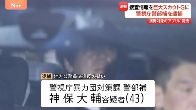 警視庁によりますと、神保容疑者は、警視庁の暴力団対策課が捜査している巨大スカウトグループ「ナチュラル」をめぐる事件で、設置した捜査カメラの画像をグループ独自のアプリに漏洩した疑いがもたれています。