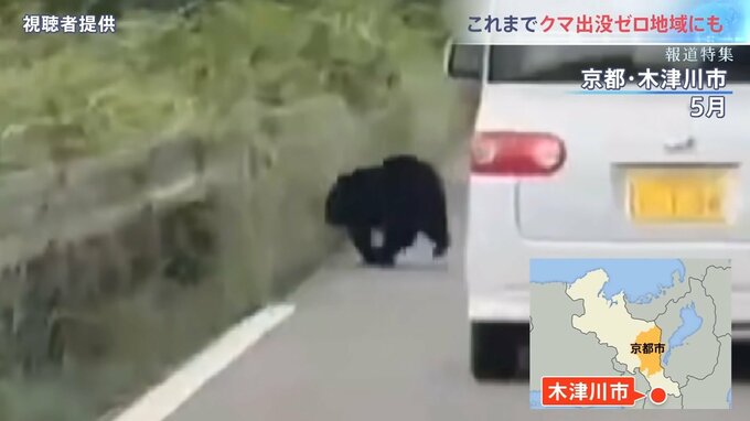 これまでクマはいないとされていた京都府南部の木津川市でも、5月に初めて目撃された。2024年までゼロだった目撃情報は、11月8日朝までに47件も寄せられている。