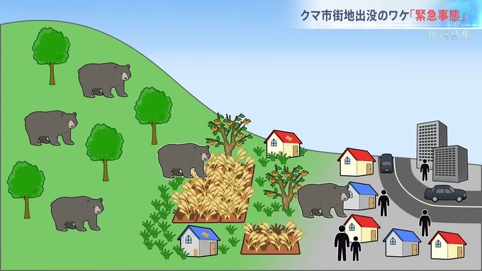 「それまで畑や水田だったところが、また森に戻ってきたりして、しかも、そこに人がいない。集落周辺には柿や栗があったりして、そこでずっと暮らしているクマたちが増えてきているので、何かちょっとしたきっかけがあると、そこから市街地にクマが飛び出てきちゃう。