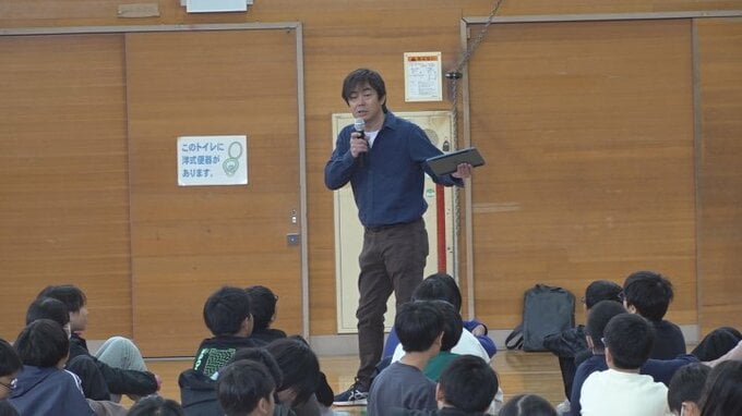 2019年から甲府市が行っている様々な分野で活躍する人が講師を務める特別授業の一環として、夢中になって取り組むことの大切さを伝えました。