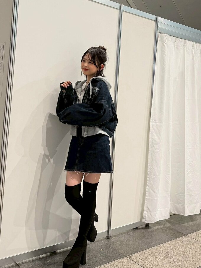 梶原さんは「いつかどこかの写真」というコメントを添えて、4枚の画像を投稿。投稿された画像には、梶原さんがポーズを取る姿が収められています。白いTシャツにグレーのパーカーとデニムジャケットを羽織り、黒いミニスカートと厚底ブーツというカジュアルなコーディネートが印象的です。