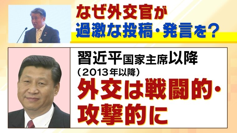 こうした過激投稿の背景には、中国の外交方針の変化があります。