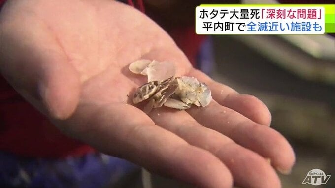 「漁師で生活できなくなる…」ホタテ大量死の現場 稚貝がほぼ全滅のところも… 漁師からは“悲痛な叫び” 水揚げ量の減少で店頭価格も上昇 「買えない」買い物客から本音ポロリ 販売スペース縮小のスーパーも 青森テレビ 2025年11月13日(木) 06:25 国内 青森県の「陸奥湾ホタテ」が危機的な状況です。 養殖ホタテの水揚げ量が日本一の青森県平内町では、この夏の猛暑の影響などで稚貝が全滅に近いところもあり、漁師は危機感を募らせています。
