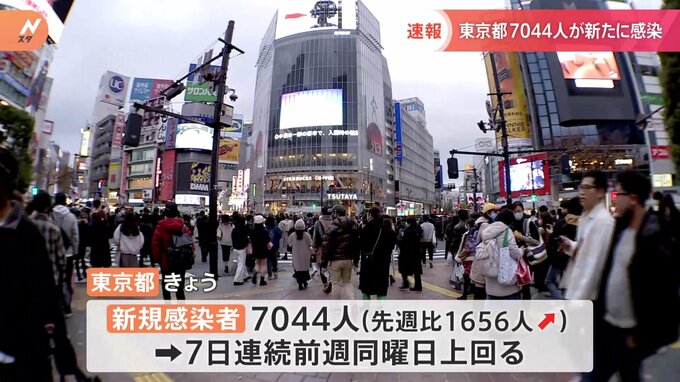 新型コロナウイルスについて、厚生労働省はきょう、東京都で7044人の感染が報告されたと発表しました。厚生労働省によりますと、東京都できょう新たに報告された感染者は7044人で、先週の月曜日から1656人増加し、…