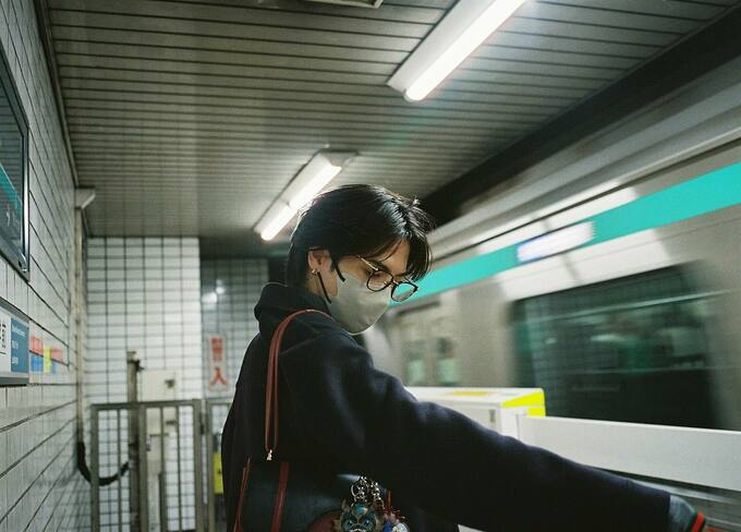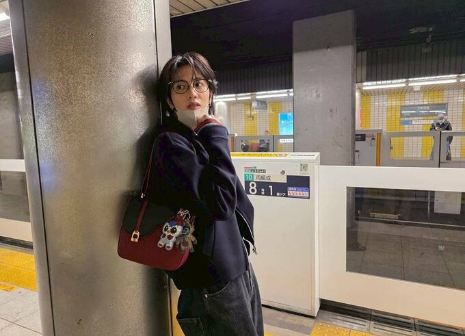投稿では、白いフリース風ジャケットを着て夜の都会を歩く姿や、地下鉄の駅構内での様子など、日常的なシーンが複数枚公開されています。