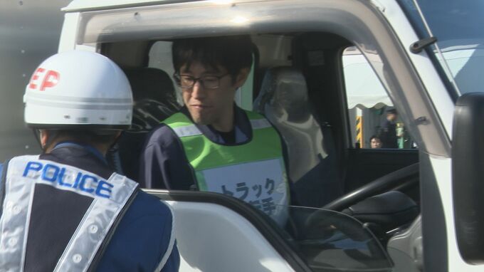 駆け付けた警察官が、運転席で動けなくなっていたトラックの運転手の救助手順などを確認しました。