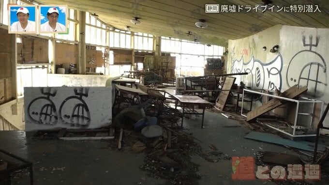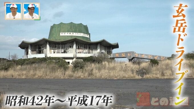 玄岳ドライブインは、建物のデザインや充実した設備が話題を呼び、乗用車1000台、大型バス300台を停められる駐車場がいっぱいになることも多かったそう。昭和42年から平成17年まで営業していましたが、現在は姿形を残したままさびれた状態に。